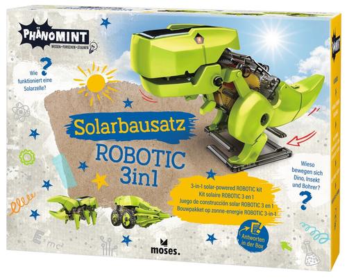 Robot 3 in 1. The solar cell converts sunlight into electricity. The resulting current is used to power the dinosaur, the drill and the insect and makes them move.